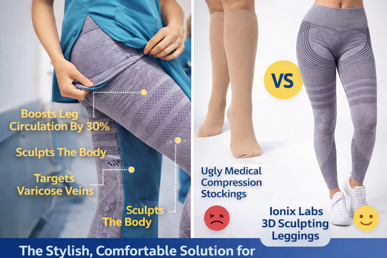 Let's be honest: nobody wants to wear thick, beige medical compression stockings. They're hot, difficult to put on, and scream "I have a medical problem." Ionix Labs leggings offer a stylish, discreet alternative that you can wear anywhere — to work, to the gym, or just around the house.